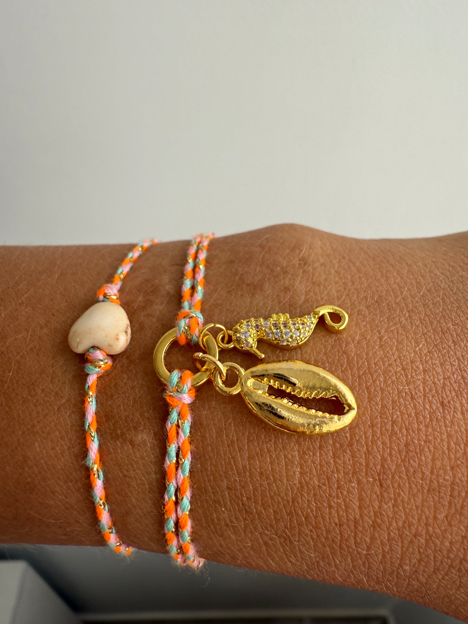 Dos manillas en una, con lo mas representativo del mar, donde tenemos días llenos de felicidad. Llévala contigo y mantén vivo el recuerdo de días llenos de felicidad