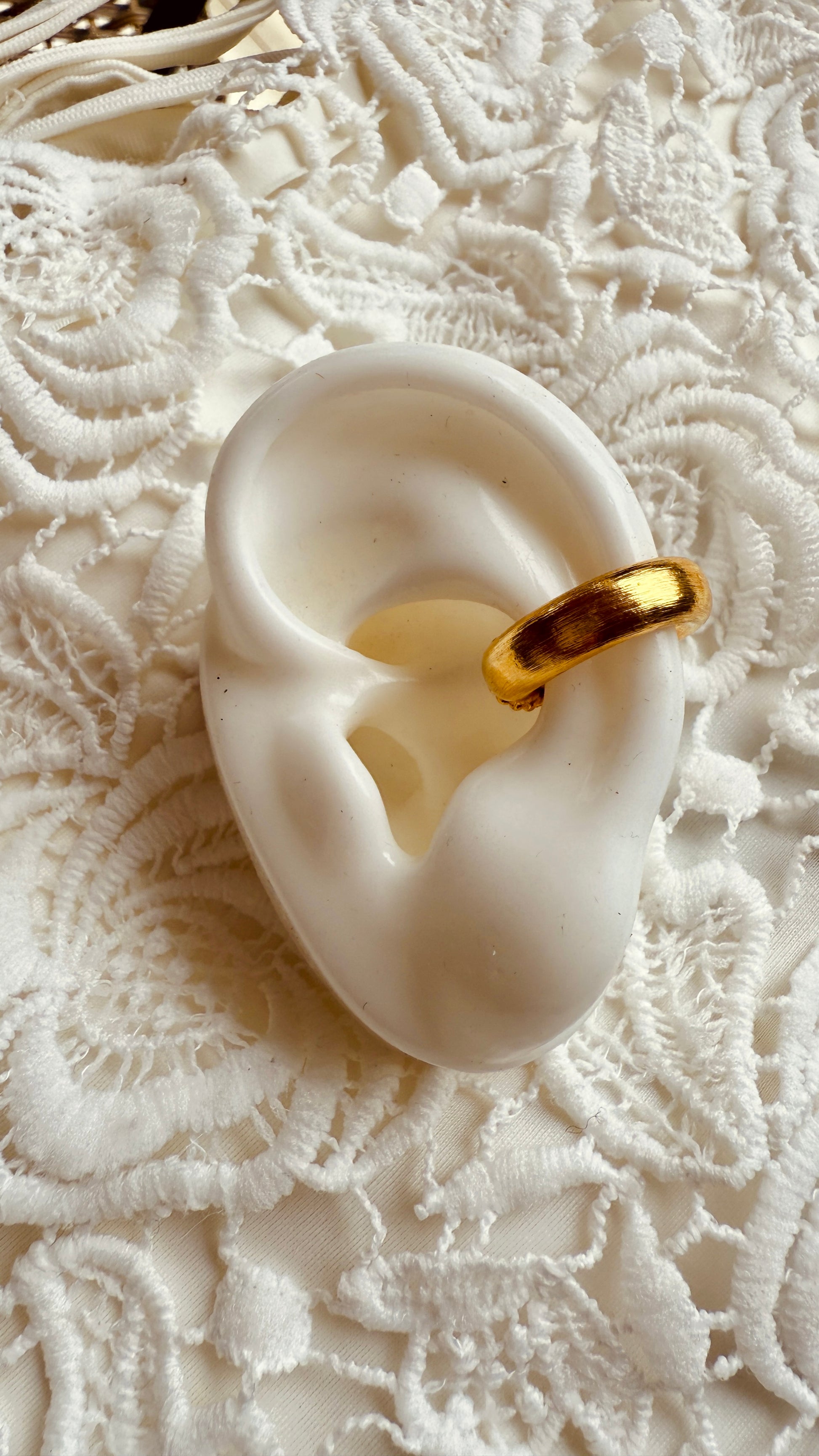 Earcuff en bronce con baño en oro, este diseño se debe colocar desde la parte superior de la oreja
