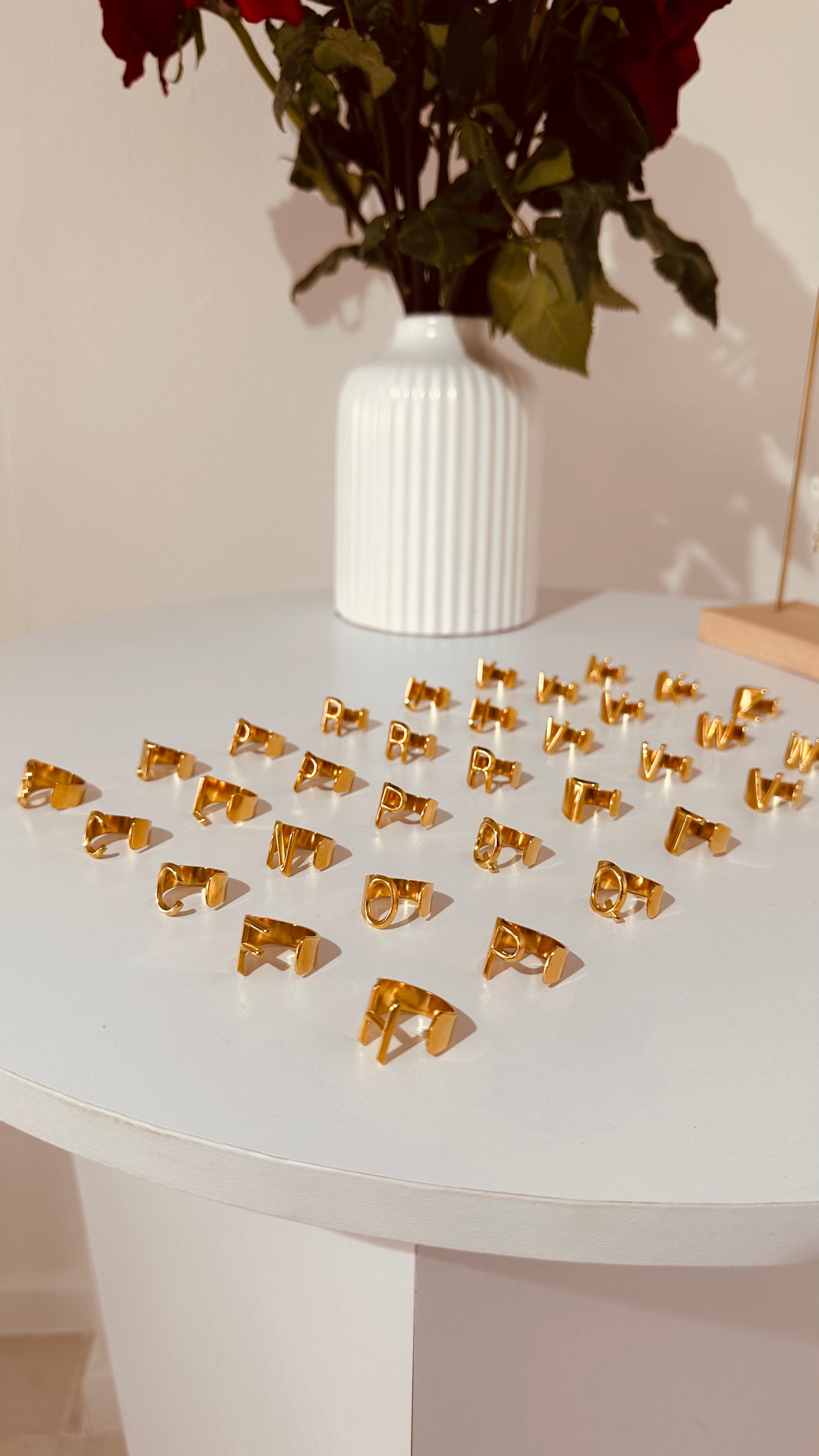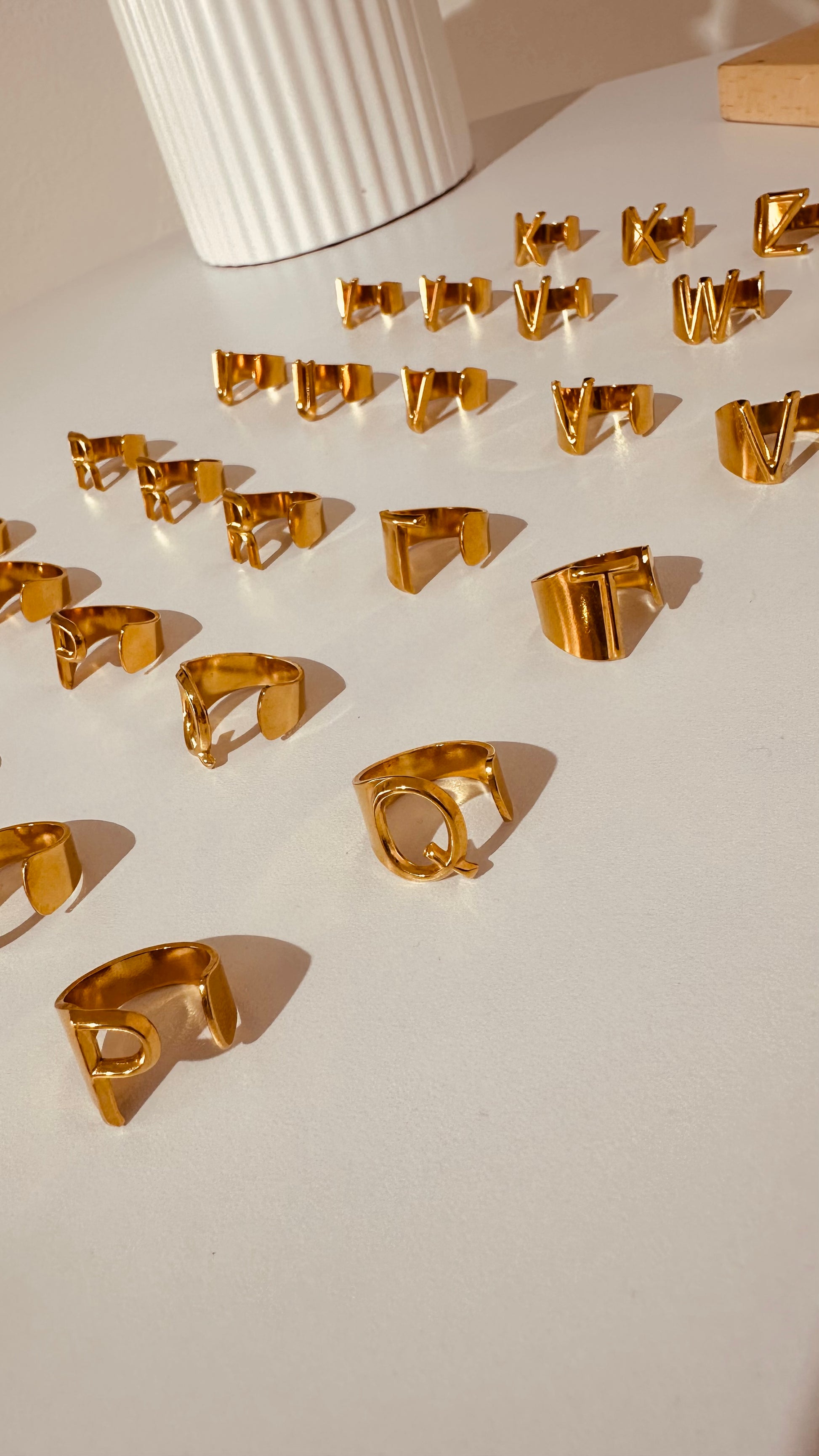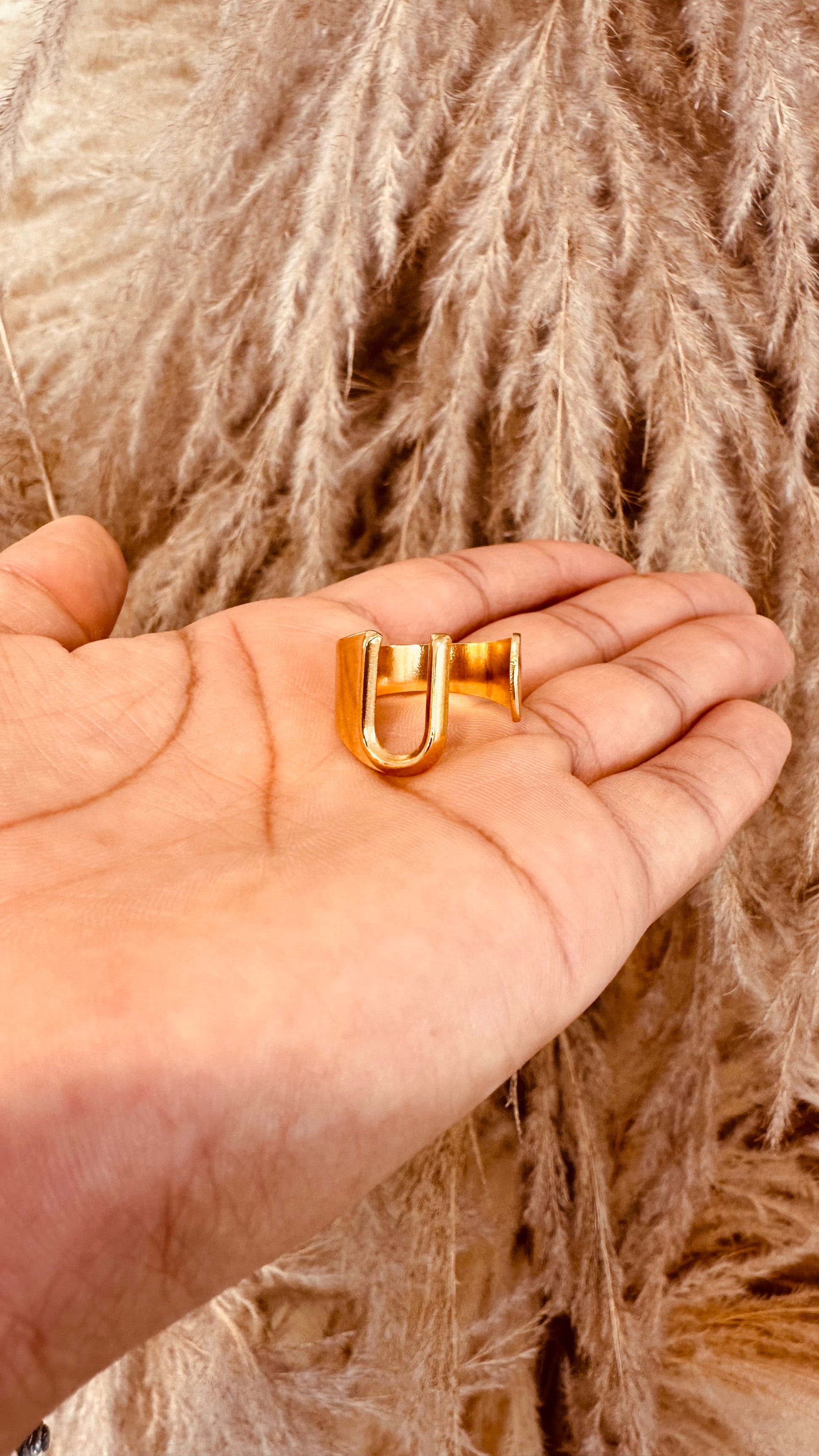 Para las amantes de las iniciales. Anillo ajustable dorado con la inicial