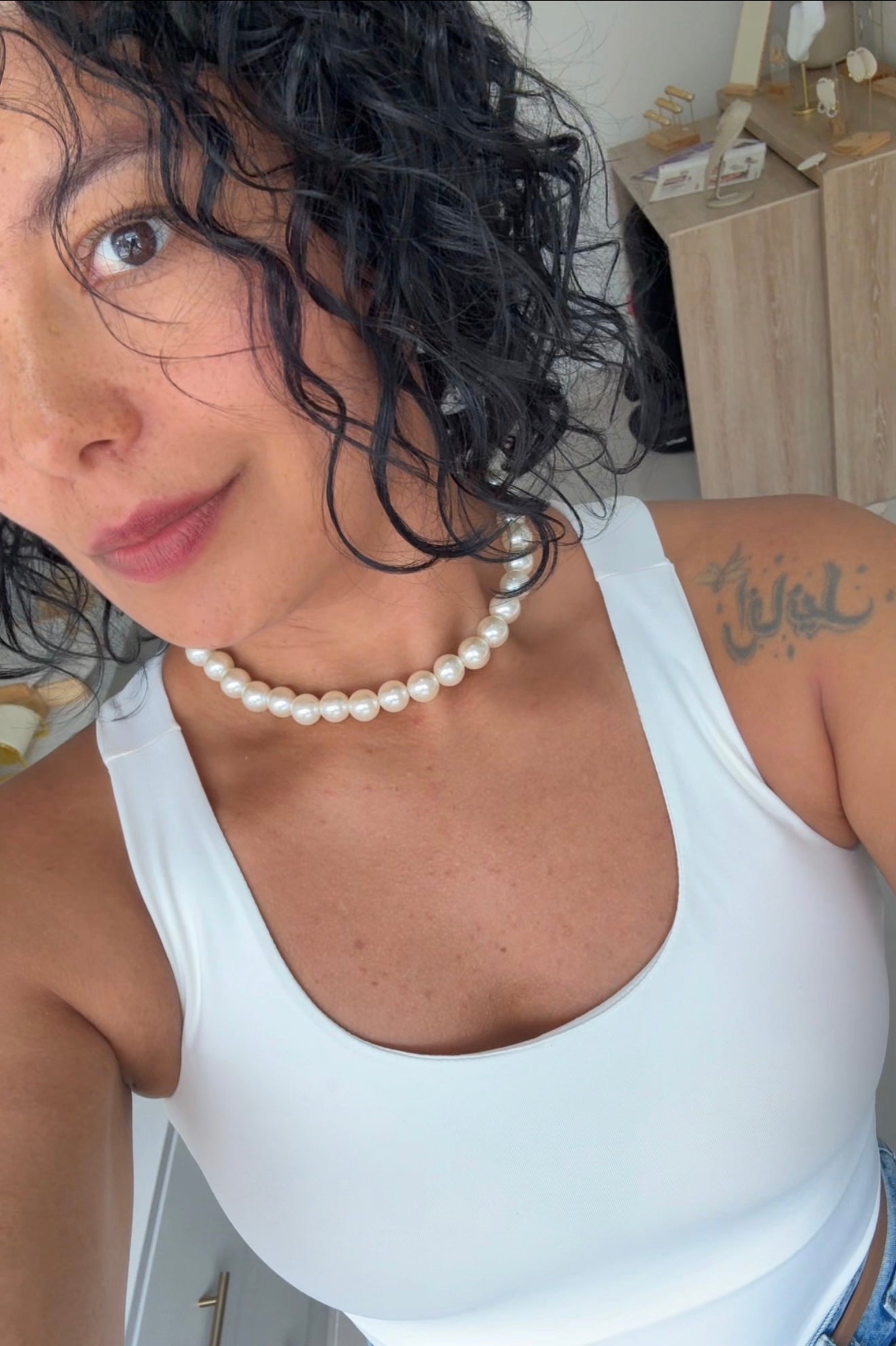 Collar perlas N.12 , el broche lo puedes usar hacia adelante o atrás .