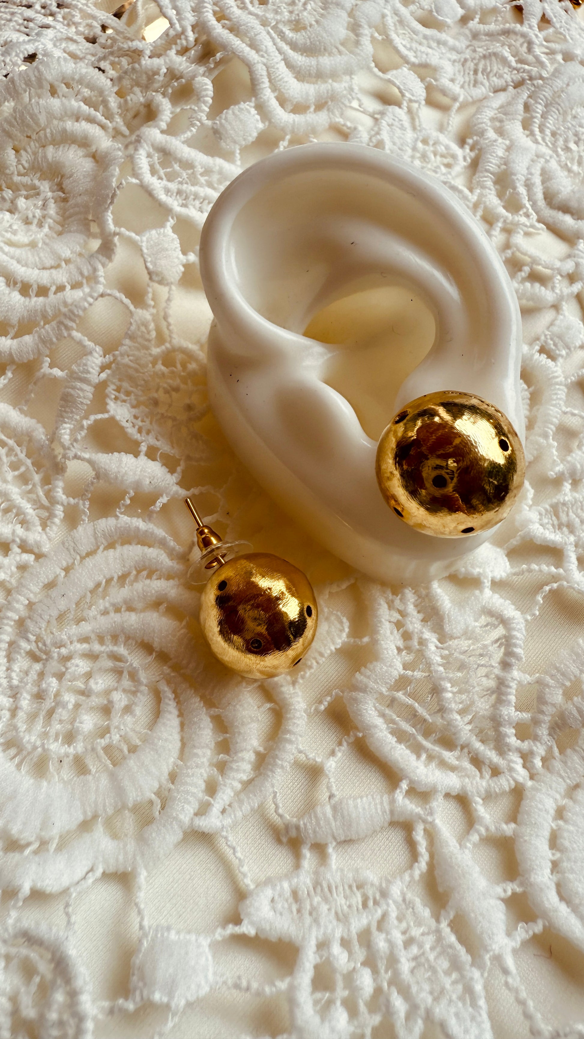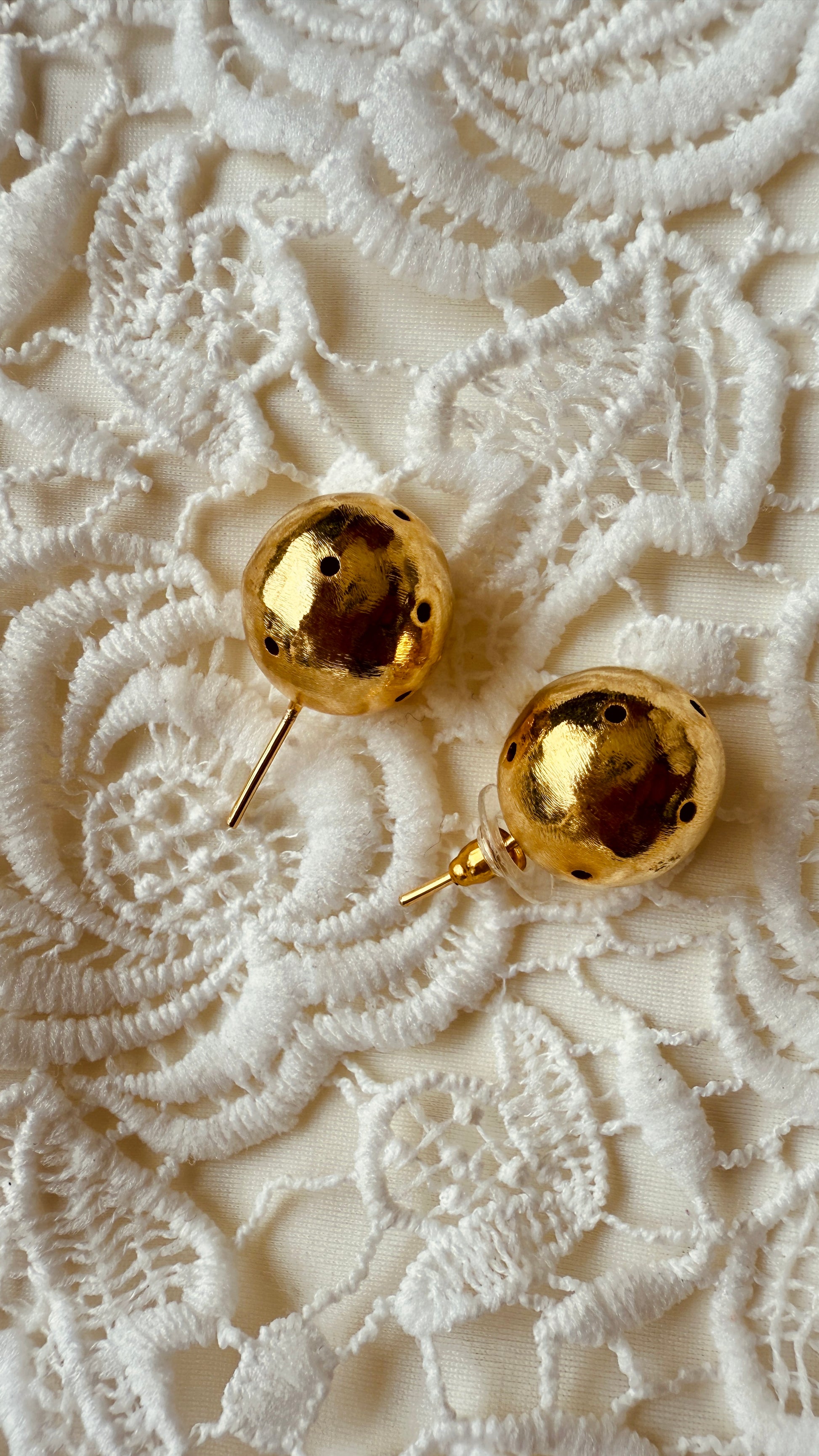 Elaborados en bronce con baño en oro, balines grandes con agujeros mini troquelados para que se lleven todo el protagonismo